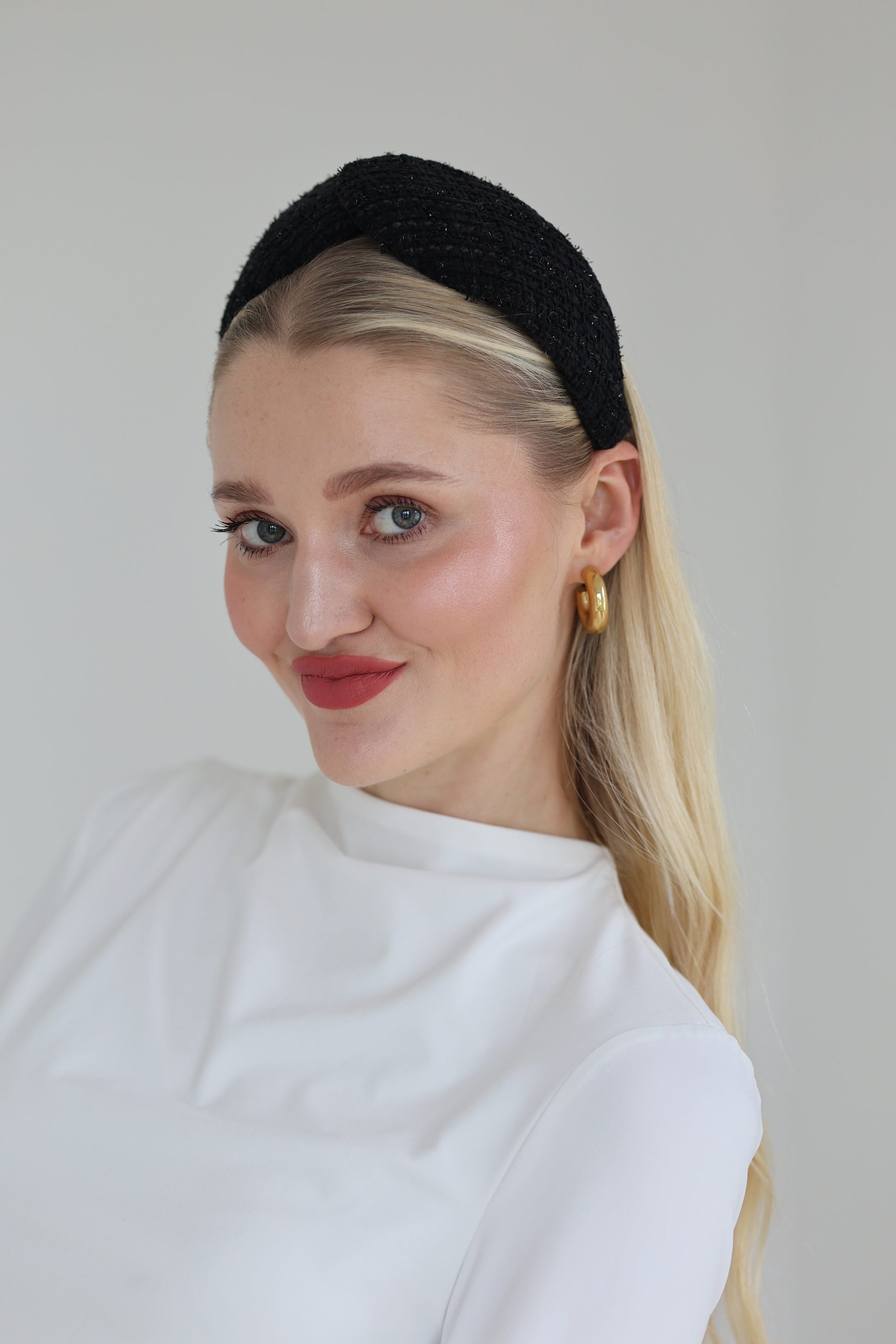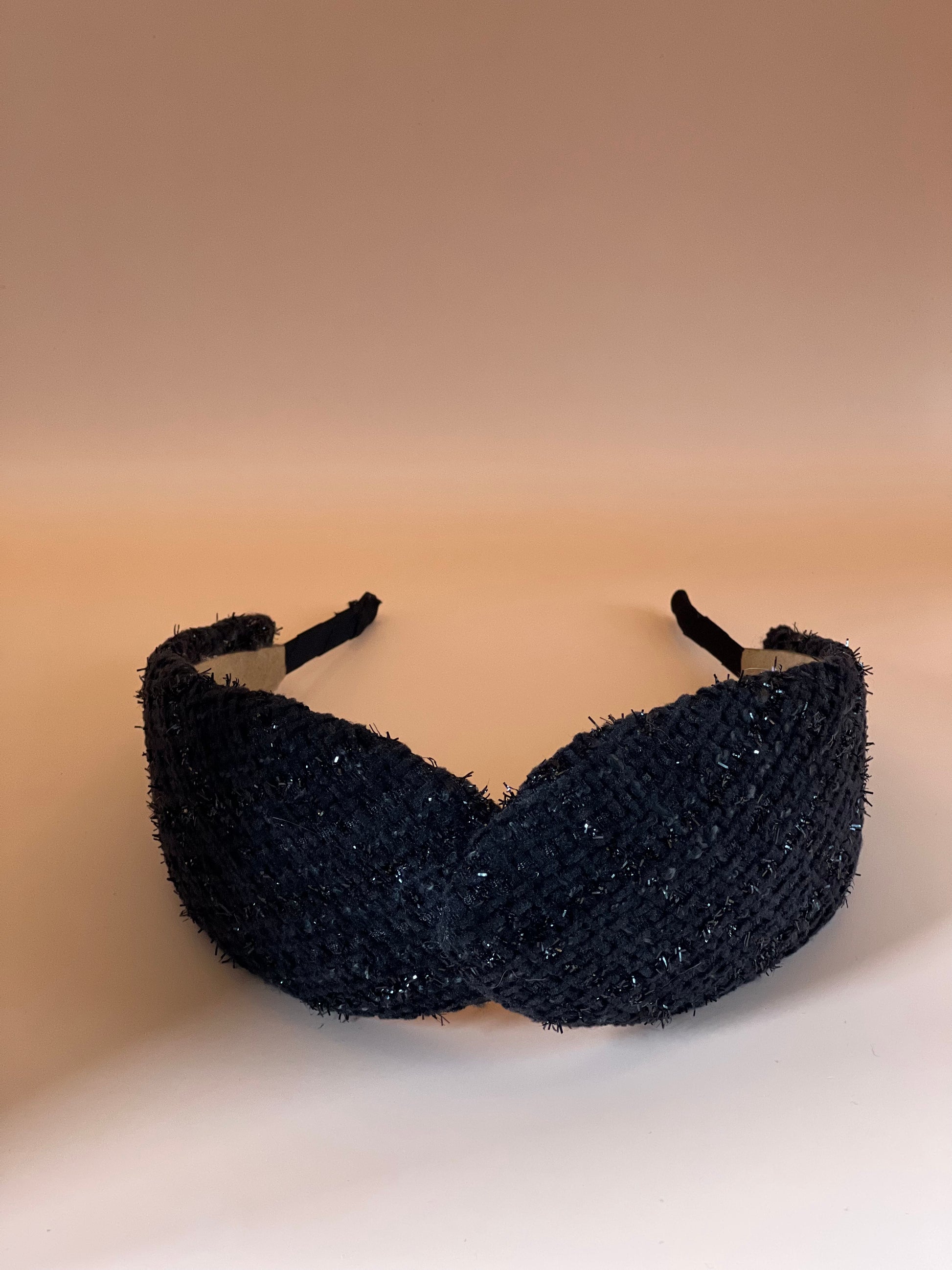 Subtly shimmering with every movement, this crossover headband brings a refined, timeless feel to your everyday or Shabbat style.
