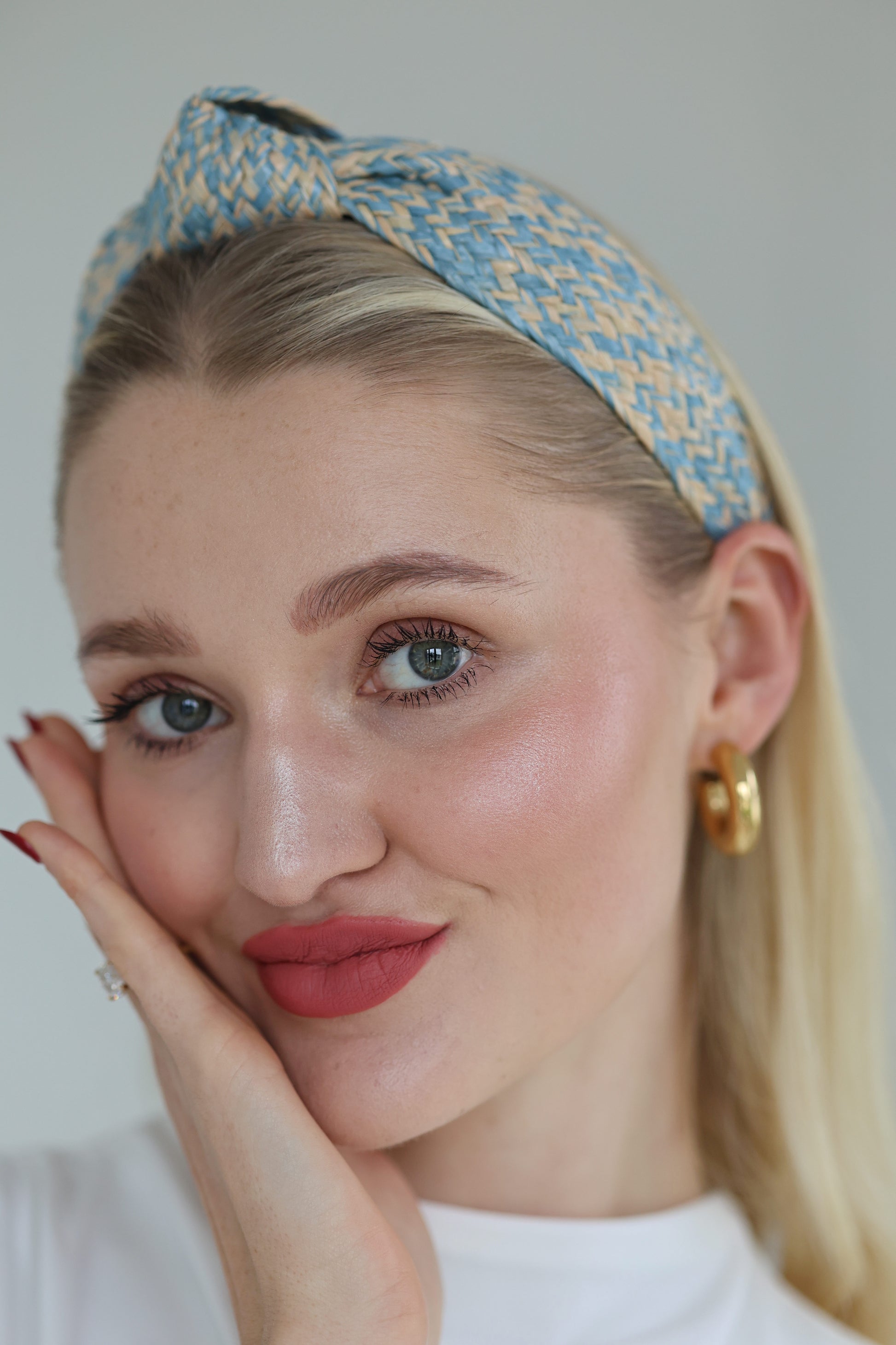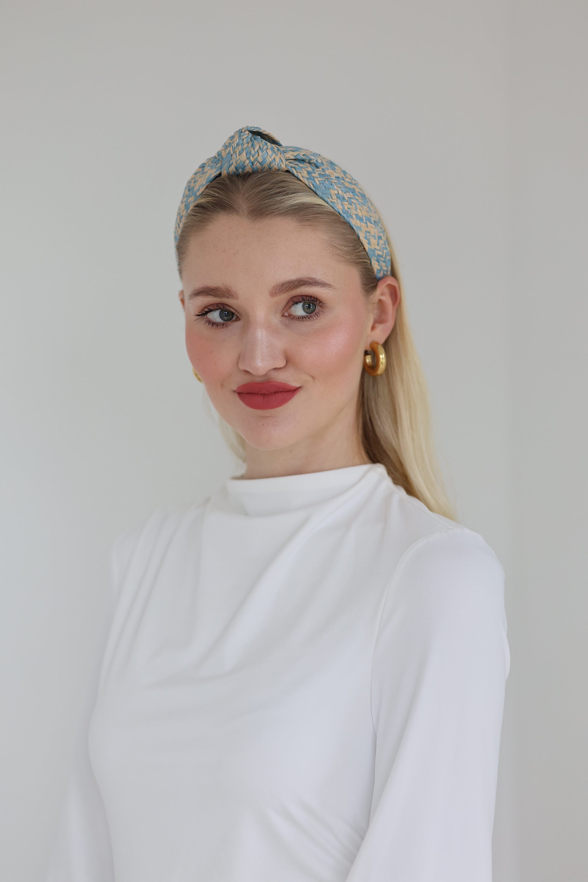Braided wicker with a lightweight yet firm structure. Holds its shape all day without feeling tight.