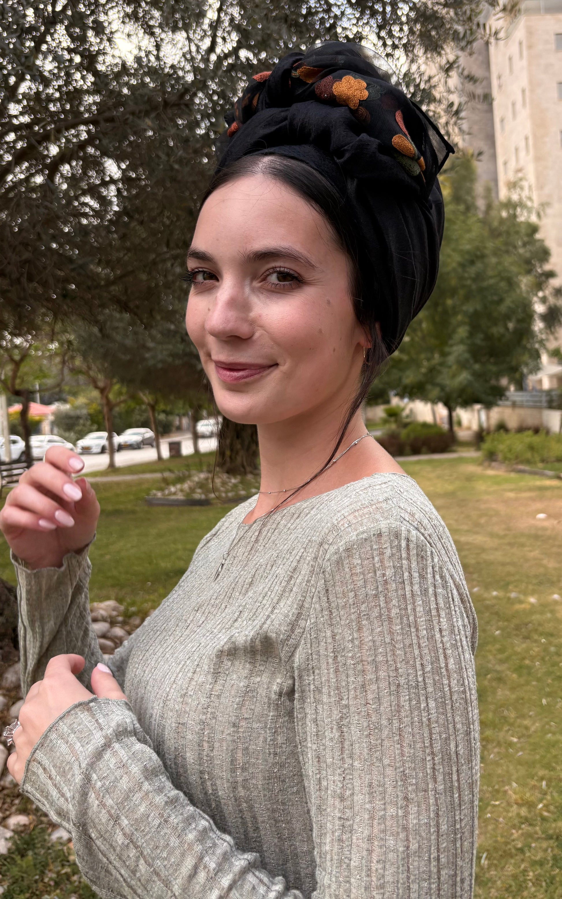 Let the embroidered florals shine by pairing with neutral tones or soft pastels. Stunning over a basic mitpachat for depth, or worn loose for a romantic, effortless vibe.