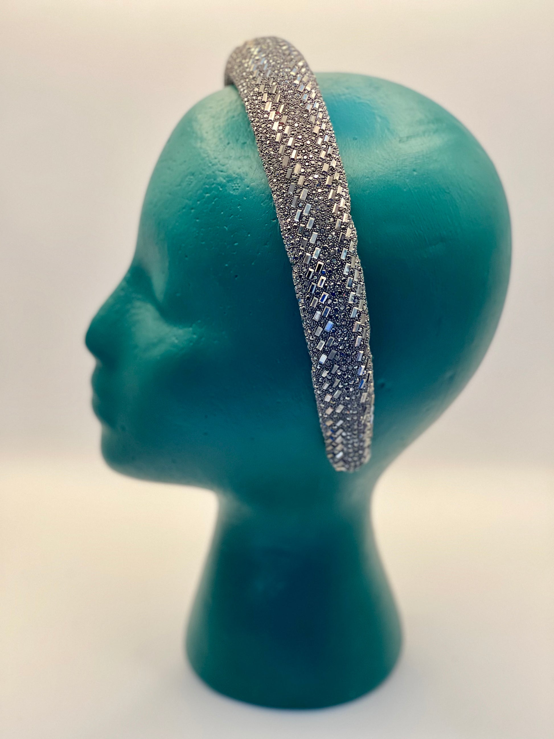 Soft textured band, encrusted with fine shimmer. Light and gentle against the scalp.