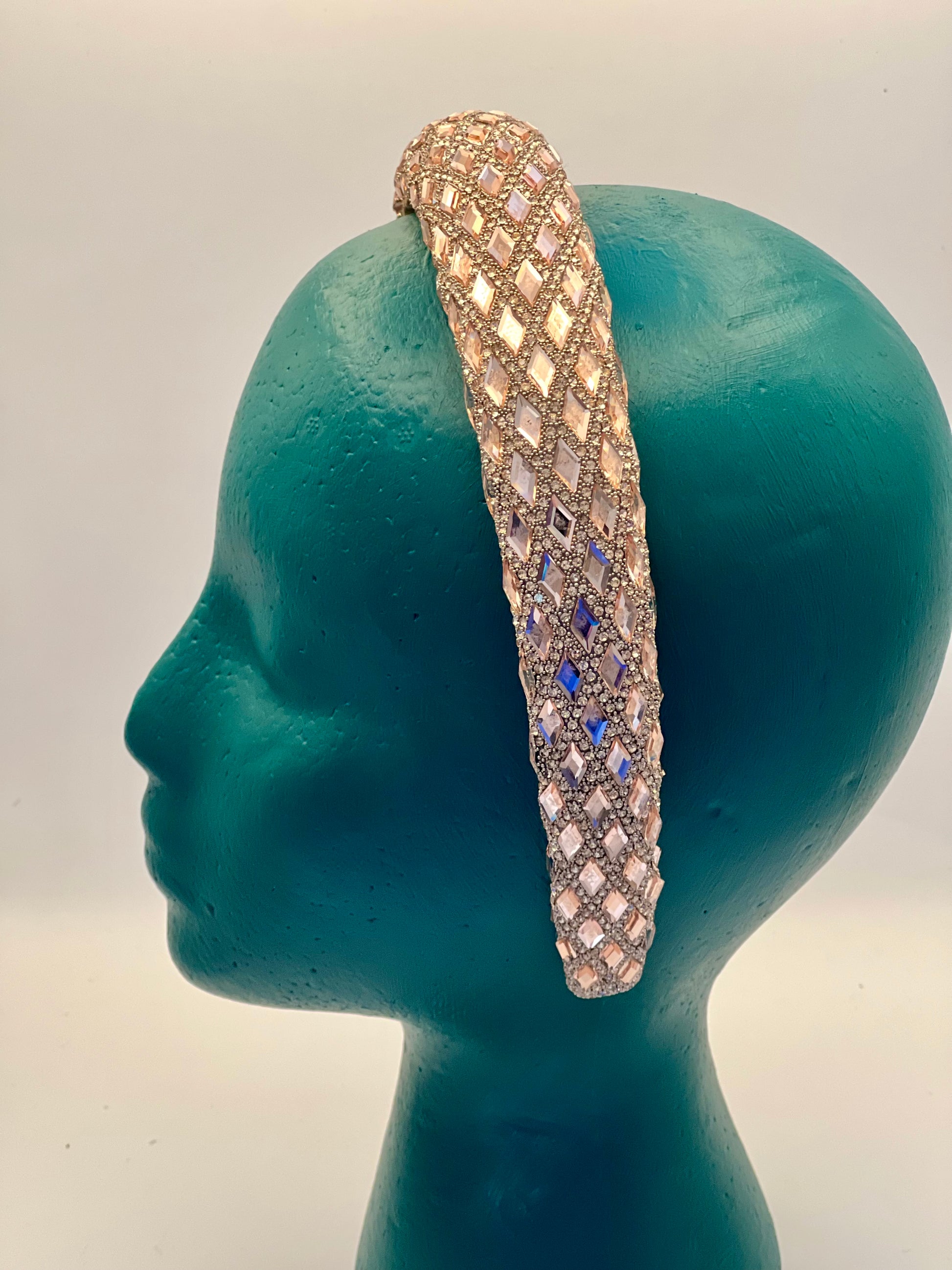 Soft textured band, encrusted with fine shimmer. Light and gentle against the scalp.