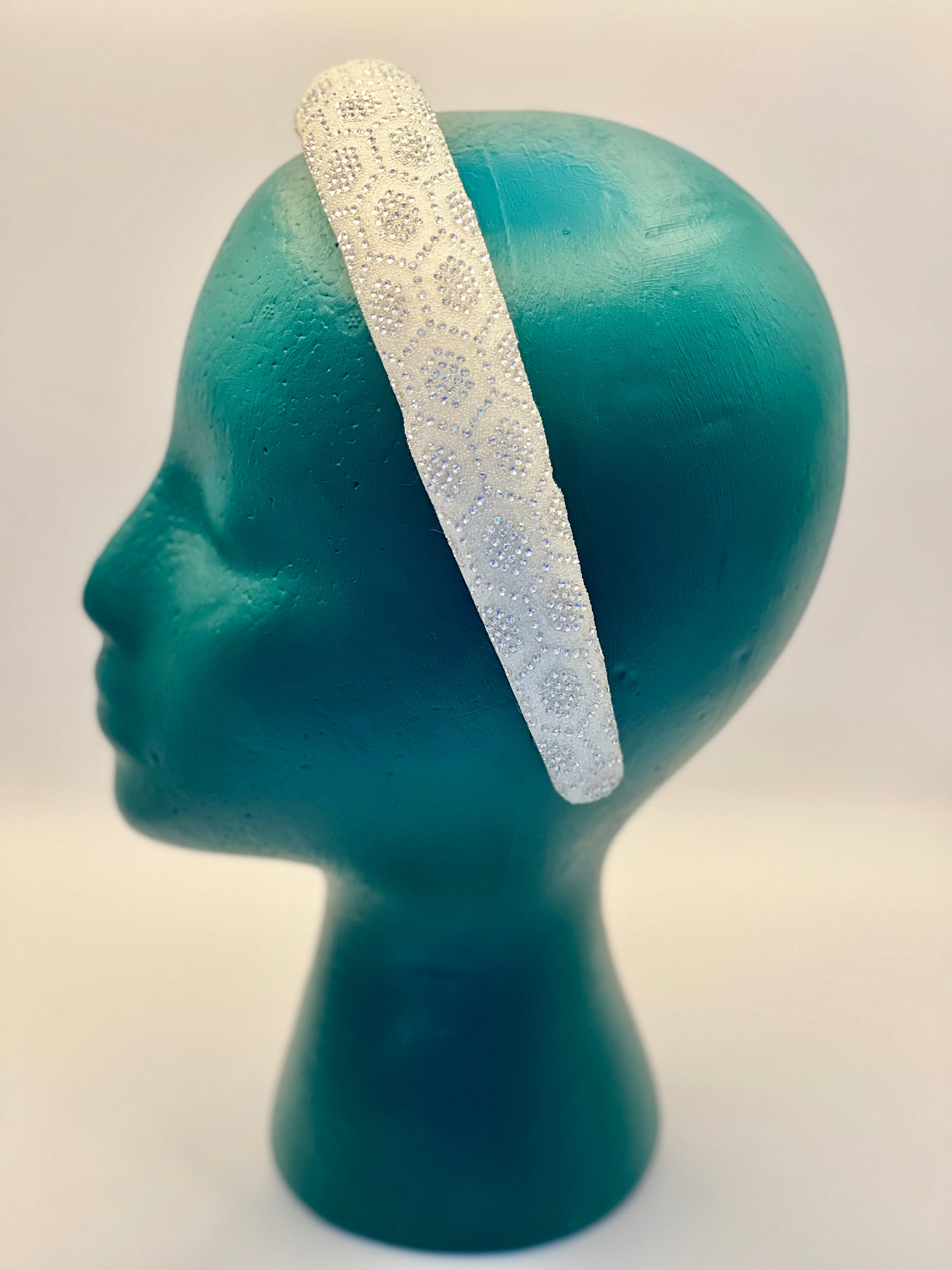 Soft textured band, encrusted with fine shimmer. Light and gentle against the scalp.