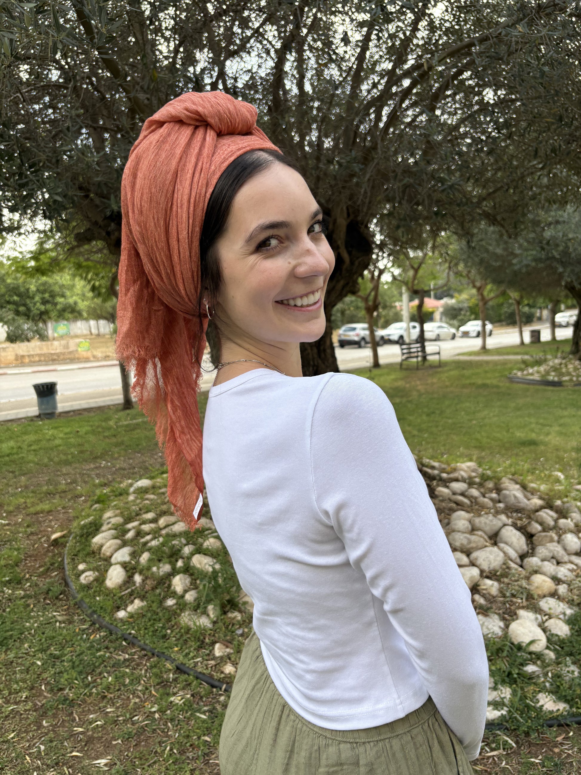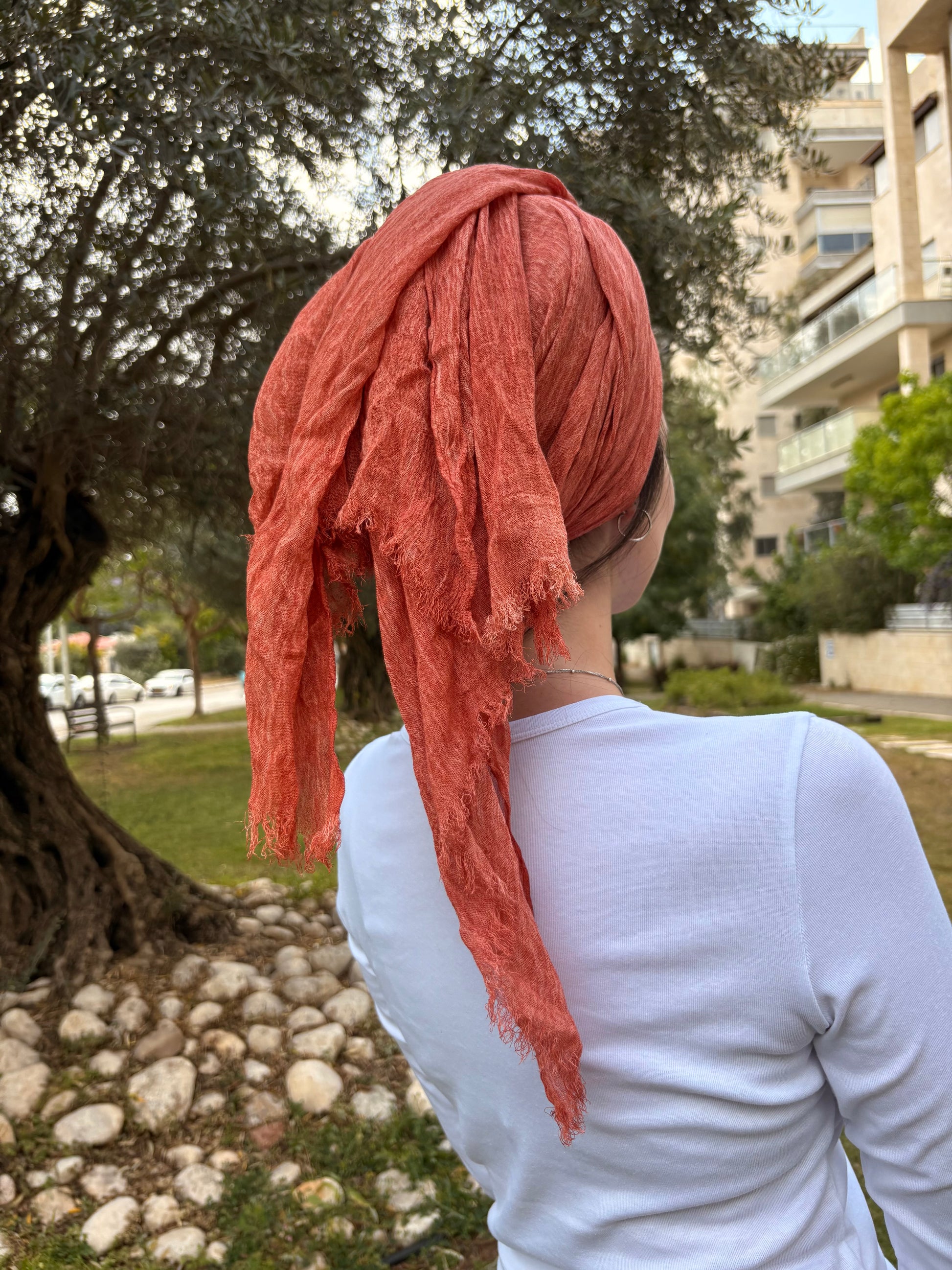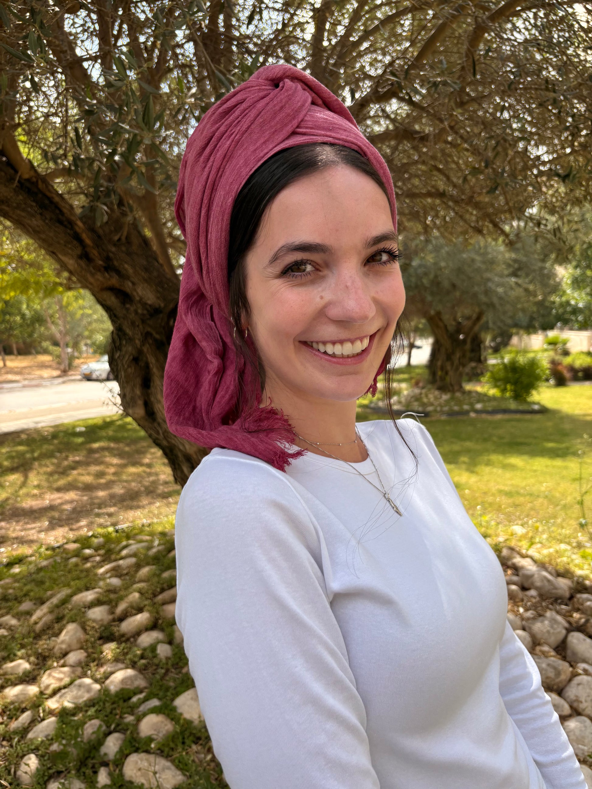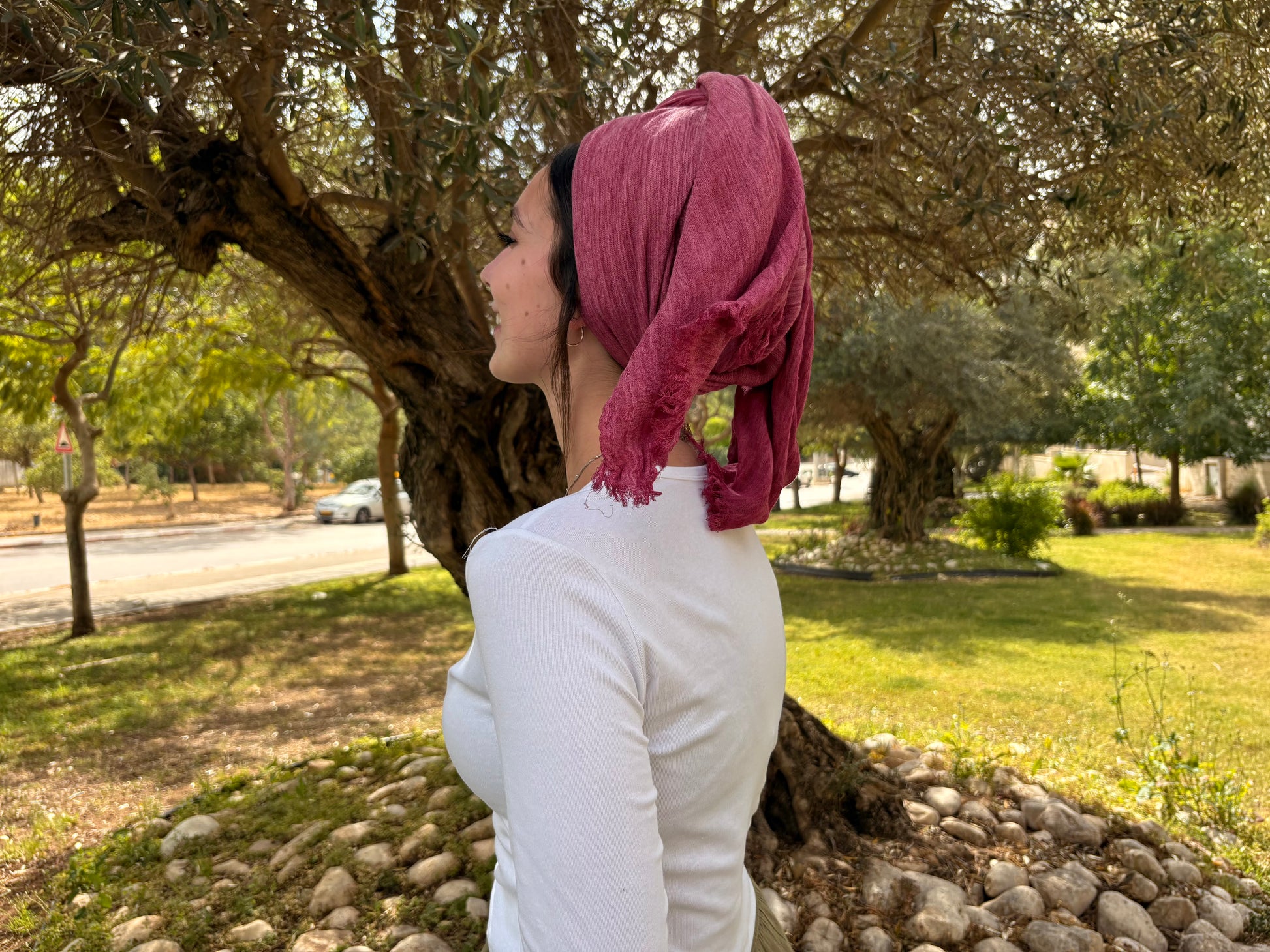 The Tamar Wrap is a beautifully crinkled tichel that brings effortless elegance to your everyday wrap. With its airy texture and soft fringe, it’s a go-to for a casual-chic look that still feels put together.