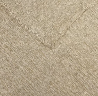 Fabric: Lightweight crinkled cotton-blend with raw edges for natural texture.