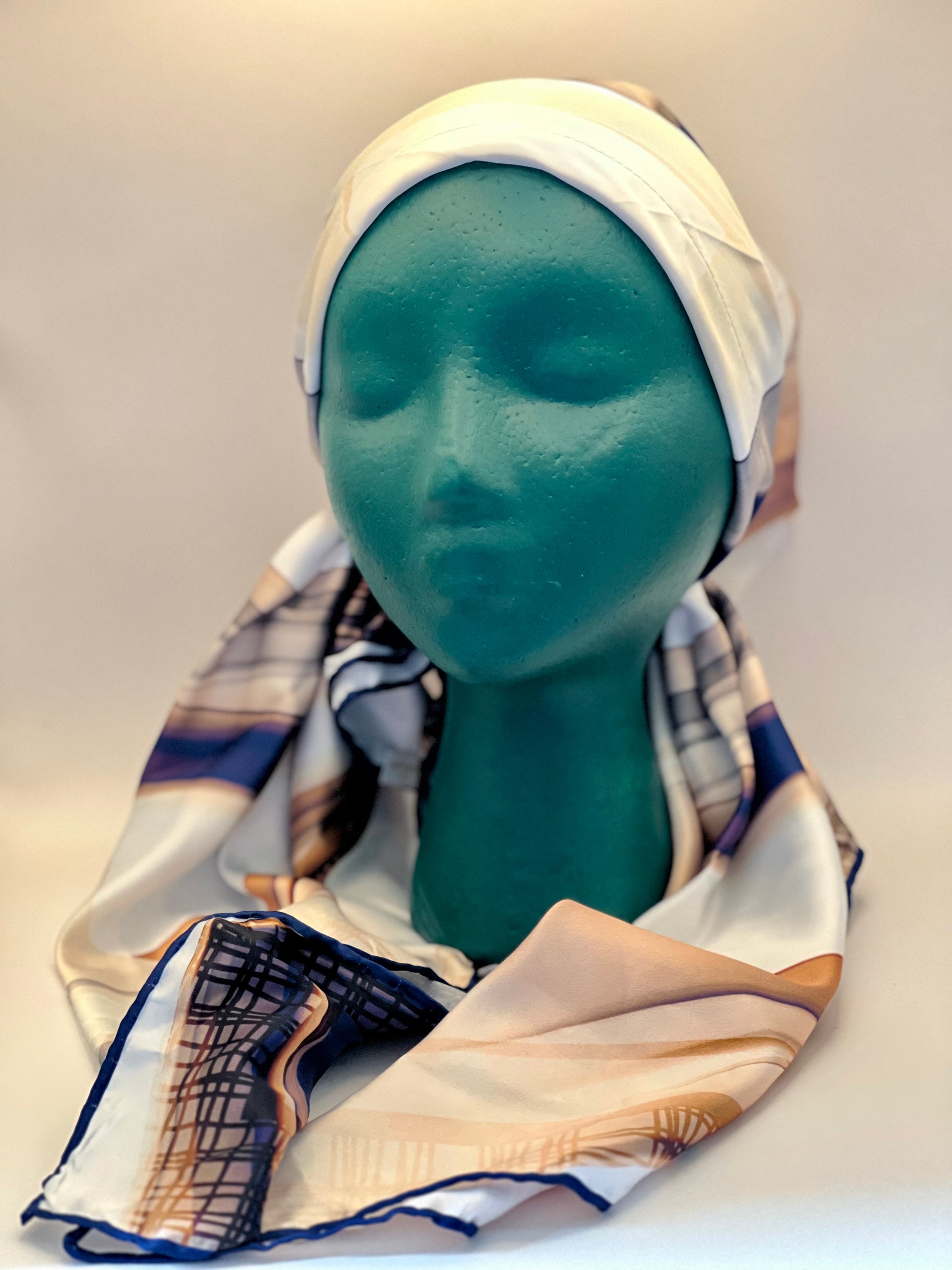 Rooted in quiet strength, Hakanvas draws inspiration from the Hebrew word for "canvas", a space ready to receive light, layers, and transformation. This tichel speaks to women who carry depth beneath simplicity, offering a serene yet empowering presence.